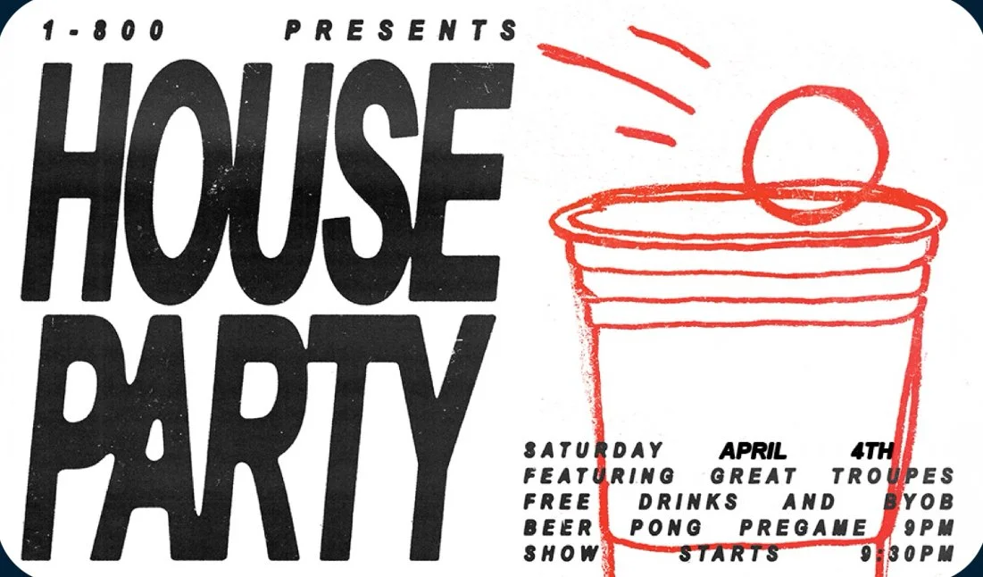 Picture the best 2016 house party you went to. Triple that, and visualize it as an improv show. Yeah, that’s what we’re doing here.