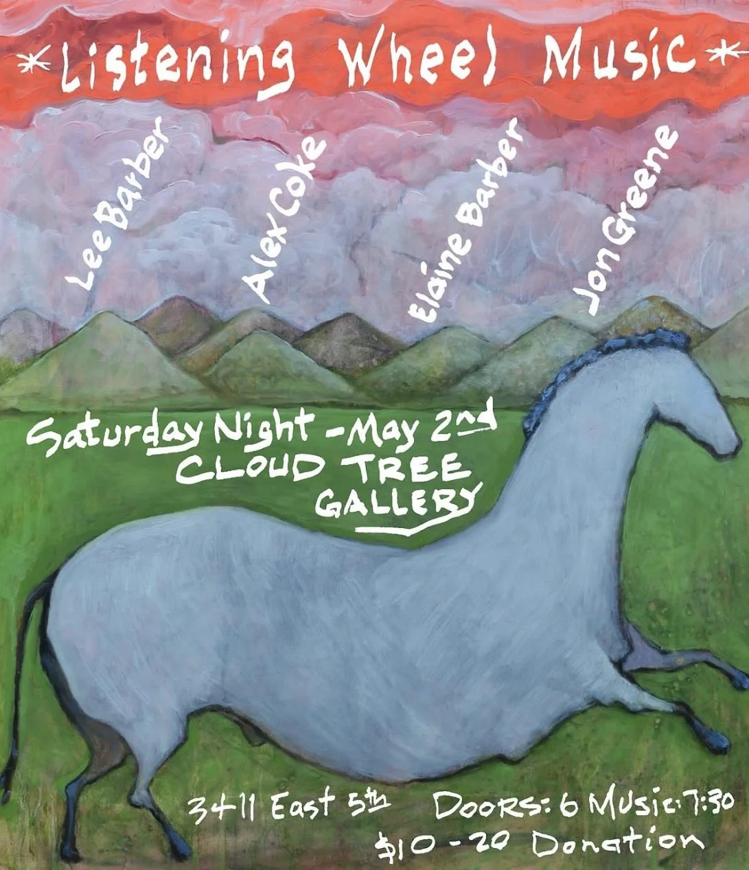 Current artist on view, Lee Barber, is hosting a night viewing of ‘Listening Wheel’ + a music performance by him and friends.